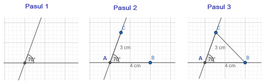 CONSTRUCTIA TRIUNGHIURILORExista mai multe modalitati de construire a triunghiurilor, in functie de ceea ce ni se da. Cazul 1: L.U.L. (latura, unghi, latura) Stim 2 laturi alaturate si unghiul dintre ele. Exemplu: Construiti un triunghi cu un unghi de 70º si cu lungimile...